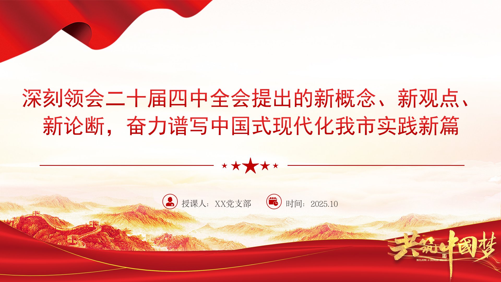黨課PPT:深刻領會二十屆四中全會提出的新概念、新觀點、新論斷,奮力譜寫中國式現(xiàn)代化我市實踐新篇