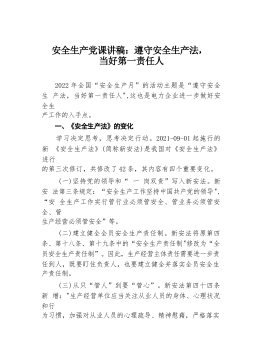 安全生產(chǎn)黨課講稿:遵守安全生產(chǎn)法,當(dāng)好第一責(zé)任人