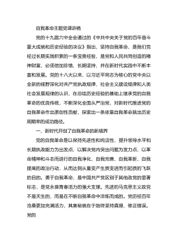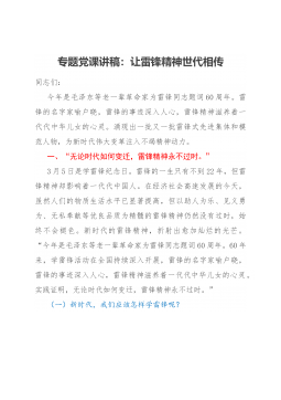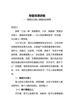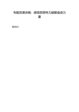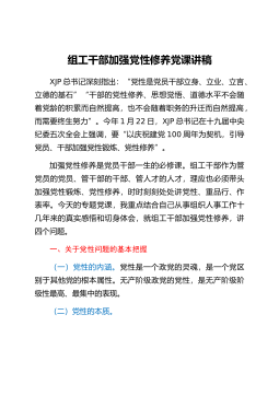 專題黨課講稿:提高政治意識嚴(yán)守政治規(guī)矩堅強(qiáng)機(jī)關(guān)黨的組織建設(shè)同志們:根據(jù)“不忘初心、牢記使命”主題教育計劃安排,今天由我圍繞“提高政治意識、嚴(yán)守政治規(guī)矩、堅強(qiáng)機(jī)關(guān)黨的組織建設(shè)”這個專題,給大家講一課。主要講四個方面內(nèi)容:。一、緊緊扭住固牢先進(jìn)性根基不放,著力解決黨的意識、黨員意識淡化的問題黨的意識和黨員意識是黨員的靈魂。如果黨的意識、黨員意識淡化,就會導(dǎo)致精神“缺鈣”、思想真空,也會動搖黨組織和黨員的先進(jìn)性根基。我們黨剛剛組建時,李大釗、陳獨秀、毛澤東、周恩來、鄧小平等老一輩無產(chǎn)階級革命家,面對各種各樣的艱難險阻,從來沒有動搖過自己的信念和追求,那時候發(fā)展黨員,第一條就是不怕死,因為對共產(chǎn)黨來說...