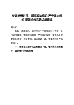 專題黨課講稿:提高政治意識嚴(yán)守政治規(guī)矩堅強(qiáng)機(jī)關(guān)黨的組織建設(shè)