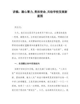 講稿:凝心聚力,勇?lián)姑?共繪學(xué)校發(fā)展新藍(lán)圖