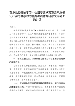 縣長(zhǎng)在縣委理論學(xué)習(xí)中心組專題學(xué)習(xí)習(xí)近平總書記在河南考察時(shí)的重要講話精神研討會(huì)上的發(fā)言提綱同志們:在“十五五”規(guī)劃謀篇布局的關(guān)鍵時(shí)期,習(xí)近平總書記親臨河南考察并發(fā)表重要講話,為我們指明了前進(jìn)方向、提供了根本遵循。這次專題學(xué)習(xí)研討會(huì),就是要讓我們深刻領(lǐng)悟總書記重要講話精神,切實(shí)把思想和行動(dòng)統(tǒng)一到黨中央決策部署上來,奮力推動(dòng)我縣各項(xiàng)事業(yè)高質(zhì)量發(fā)展。下面,我談幾點(diǎn)體會(huì),與同志們共同交流。一、深化思想認(rèn)識(shí),筑牢理論根基思想是行動(dòng)的先導(dǎo),理論是實(shí)踐的指南。習(xí)近平總書記在河南考察時(shí)的重要講話,高屋建瓴、內(nèi)涵豐富,為我們提供了強(qiáng)大的思想武器和行動(dòng)綱領(lǐng)。我們要深入學(xué)習(xí)、深刻領(lǐng)會(huì),切實(shí)把思想和行動(dòng)統(tǒng)一到總書記重要...
