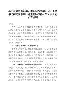 縣長(zhǎng)在縣委理論學(xué)習(xí)中心組專題學(xué)習(xí)習(xí)近平總書記在河南考察時(shí)的重要講話精神研討會(huì)上的發(fā)言提綱