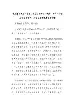市應(yīng)急局領(lǐng)導(dǎo)二十屆三中全會精神研討發(fā)言:學(xué)習(xí)二十屆三中全會精神,開創(chuàng)應(yīng)急管理事業(yè)新局面