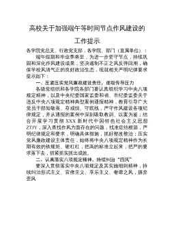 關(guān)于持續(xù)正風(fēng)肅紀(jì)確?!拔逡弧?、端午期間廉潔過節(jié)的通知2023年五一、端午節(jié)即將來臨,為深入貫徹落實黨中央、省、市、區(qū)委關(guān)于廉潔過節(jié)的各項要求,持之以恒落實中央八項規(guī)定及其實施細(xì)則精神,持續(xù)推進(jìn)正風(fēng)肅紀(jì),營造風(fēng)清氣正的節(jié)日氛圍。現(xiàn)通知如下。全區(qū)各級黨組織和廣大黨員干部要深入學(xué)習(xí)貫徹XXX總書記關(guān)于作風(fēng)建設(shè)的一系列重要論述,不斷提高政治判斷力、政治領(lǐng)悟力、政治執(zhí)行力,深刻認(rèn)識不正之風(fēng)的政治本質(zhì)、政治危害,切實扛起鞏固深化作風(fēng)建設(shè)成果的政治責(zé)任。全區(qū)廣大黨員干部特別是領(lǐng)導(dǎo)干部帶頭落實中央八項規(guī)定精神,厲行勤儉節(jié)約,反對鋪張浪費(fèi),堅決摒棄大操大辦喜慶事宜、收送“天價彩禮”等歪風(fēng)陋習(xí),教育引導(dǎo)廣大黨員干...