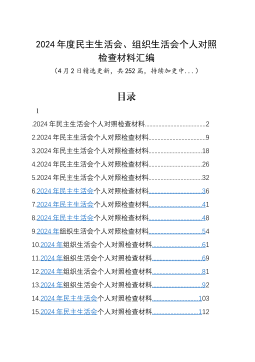 【252篇精選】2024年度組織生活會、民主生活會個人對照檢查材料四個帶頭專題4個方面嚴守政治紀律和政治規(guī)矩、增強黨性、嚴守紀律、砥礪作風、遵規(guī)守紀、清正廉潔前提下勇于擔責、敢于創(chuàng)新、履行全面從嚴治黨政治責任方面黨紀學習教育二十屆三中全會檢視剖析查擺自查含上年度整改案例剖析發(fā)言提綱范文匯編20250327