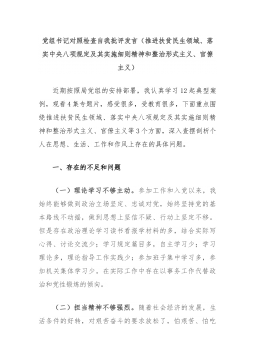 在XX市委常委班子中央環(huán)保督察通報(bào)典型問題整改專題民主生活會(huì)上的相互批評(píng)意見一、市委書記同志對(duì)其他班子成員的批評(píng)意見(一)對(duì)市長(zhǎng)同志的批評(píng)意見:市長(zhǎng)同志作為市政府主要負(fù)責(zé)同志,在統(tǒng)籌全市經(jīng)濟(jì)社會(huì)發(fā)展與生態(tài)環(huán)境保護(hù)方面做了大量卓有成效的工作。但從更高標(biāo)準(zhǔn)來看,還存在一些可以改進(jìn)之處。比如,在推動(dòng)“一核兩翼三區(qū)”發(fā)展路徑與生態(tài)環(huán)保深度融合上,思考和謀劃的系統(tǒng)性還可以再加強(qiáng)。有時(shí)為了推動(dòng)重大項(xiàng)目盡快落地,存在著對(duì)項(xiàng)目潛在環(huán)境風(fēng)險(xiǎn)評(píng)估把關(guān)不夠嚴(yán)的傾向,對(duì)一些整改任務(wù)的復(fù)雜性、長(zhǎng)期性認(rèn)識(shí)不足,導(dǎo)致部分問題整改雖然速度快,但長(zhǎng)效機(jī)制的建立有所滯后。希望市長(zhǎng)同志今后在統(tǒng)籌發(fā)展與保護(hù)時(shí),能更多地從戰(zhàn)略層面進(jìn)行...