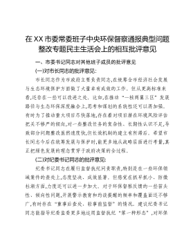 在XX市委常委班子中央環(huán)保督察通報(bào)典型問題整改專題民主生活會(huì)上的相互批評(píng)意見