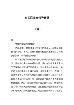 有關(guān)聯(lián)歡會(huì)領(lǐng)導(dǎo)致辭(5篇)篇1 尊敬的各位兄弟姐妹們: 大家上午好!剛剛送走x年春節(jié)的歡樂(lè),又迎來(lái)了新春聚會(huì)的喜悅。首先,請(qǐng)?jiān)试S我代表松江的兄弟姊妹,對(duì)大家的到來(lái),表示熱烈的歡迎! 45年前,我們響應(yīng)祖國(guó)的號(hào)召,滿懷激情奔赴遙遠(yuǎn)的北大荒,開始了戰(zhàn)天斗地的艱苦生活。我們?cè)谀莻€(gè)大家庭里結(jié)下了深厚的友誼,成了不是親人,勝似親人的兄弟姐妹。在廣闊無(wú)垠的黑土地上,我們?cè)谕粔K田地里耕耘,在同一個(gè)屋檐下生活,在與大自然奮斗和社會(huì)實(shí)踐中,我們付出了比常人更多的勞動(dòng)和汗水,我們走過(guò)了比他人更為艱難的崎嶇道路。所以,無(wú)論怎樣評(píng)價(jià)“知識(shí)青年上山下鄉(xiāng)”這段歷史,我們?nèi)匀粺o(wú)怨無(wú)悔地說(shuō):我們?cè)?jīng)為理想信念拼搏過(guò)我...