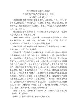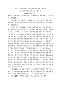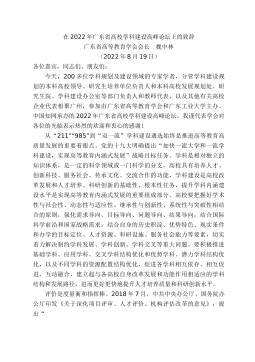 在第二屆全國高校教師教學創(chuàng)新大賽廣東分賽暨廣東省高校教師教學創(chuàng)新大賽決賽賽事委員會第二次工作會議上的致辭廣東省高等教育學會常務副會長湯貞敏廣東高教學會(2022年5月17日)各位同事:鑒于國內、省內疫情,結合全省及深圳市疫情防控要求,我們今天以線上方式,召開第二屆全國高校教師教學創(chuàng)新大賽廣東分賽暨廣東省高校教師教學創(chuàng)新大賽決賽賽事委員會工作會議。剛才,袁磊主任向大家匯報了前階段賽事組織工作情況,并就組委會、監(jiān)委會投票表決相關方案作了說明,大家就有關方案和工作安排作了表決,這對于確保決賽公平公正、有序順利進行是非常必要的。隨著省賽決賽正式啟動,各項保障工作、評審工作和國賽選拔工作隨即陸續(xù)展開。今...