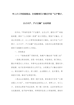 市人才工作經(jīng)驗(yàn)做法:打造精準(zhǔn)引才模式開創(chuàng)“以產(chǎn)聚才、以才興產(chǎn)、產(chǎn)才互融”生動局面