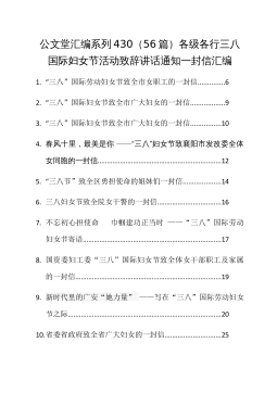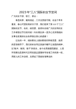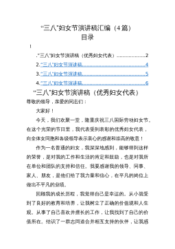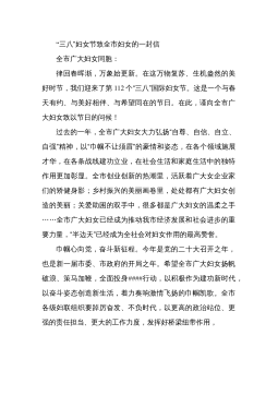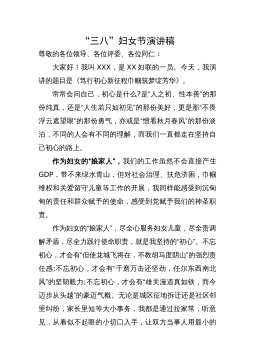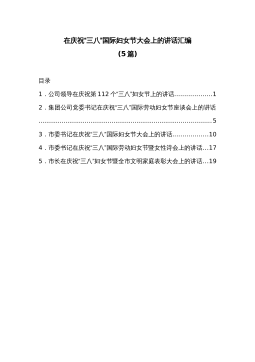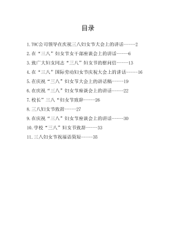 目錄1.TOC公司領導在慶祝三八婦女節(jié)大會上的講話-----22.在“三八”婦女節(jié)女干部座談會上的講話-----63.致廣大婦女同志“三八”婦女節(jié)的慰問信-----134.在“三八”國際勞動婦女節(jié)慶祝大會上的講話-----165.在慶?!叭恕眿D女節(jié)大會上的講話稿-----196.在慶祝“三八”婦女節(jié)座談會上的講話-----227.校長”三八“婦女節(jié)致辭-----268.三八婦女節(jié)致辭-----279.在慶?!叭恕眿D女節(jié)座談會上的講話-----3010.學?!叭恕眿D女節(jié)致辭-----3311.三八婦女節(jié)祝福語簡短-----35公司領導在慶祝三八婦女節(jié)大會上的講話女職工同志們:你們好!春回大...