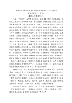提高教育教學質(zhì)量、辦好人民滿意教育----在慶祝第XX個教師節(jié)大會上的講話尊敬的各位老師,同志們:在這個收獲成果和播種希望的美好季節(jié)里,我們歡聚一堂,隆重慶祝第XX個教師節(jié)。在這里,我代表縣四大班子和全縣人民,向辛勤耕耘的全縣教師和教育工作者,致以節(jié)日的問候!向今天受表彰的先進集體、先進個人表示熱烈的祝賀!特別向長期扎根在農(nóng)村邊遠地區(qū)不計個人得失,堅守清貧,忘我工作,為促進城鄉(xiāng)教育均衡發(fā)展做出突出貢獻的教師,表示最崇高的敬意!也向長期以來關(guān)心和支持兩當教育事業(yè)的各級領(lǐng)導與各界人士,表示衷心的感謝近年來,我縣教育優(yōu)先發(fā)展的戰(zhàn)略地位逐步確立,“黨以重教為先,政以興教為本,民以支教為榮,師以從教為樂...
