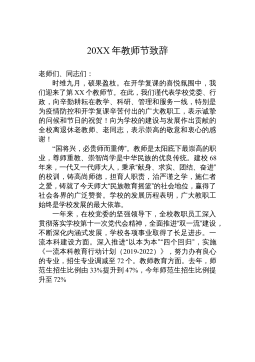 教師節(jié)致辭老師們、同志們:在這金秋送爽、荷花飄香的季節(jié)里,在全區(qū)深入開展創(chuàng)先爭優(yōu)活動之際,我們歡聚一堂,隆重慶祝第XX個教師節(jié)。首先,我代表武湖街工委、農(nóng)場黨委向辛勤耕耘在全場教育戰(zhàn)線上的廠大教職員工致以節(jié)日的祝賀!向在教書育人工作中做出突出貢獻(xiàn)的先進(jìn)單位、先進(jìn)個人致以最親切的問候和最崇高的敬意!響關(guān)心、支持教育事業(yè)的先進(jìn)個人和關(guān)愛教育事業(yè)的社會各界,表示最衷心的感謝!回首過去的一年,我們倍感自豪和欣慰。在市區(qū)的大力支持下,全場上下以“一生三化"責(zé)任目標(biāo)總攬工作全局,堅持發(fā)展和建設(shè)“兩個提速”不動搖,以效益為中心,以環(huán)境創(chuàng)新為切入點(diǎn),重點(diǎn)推進(jìn)農(nóng)業(yè)產(chǎn)業(yè)化經(jīng)營,突破性發(fā)展民營經(jīng)濟(jì)和開放型經(jīng)濟(jì),農(nóng)場...